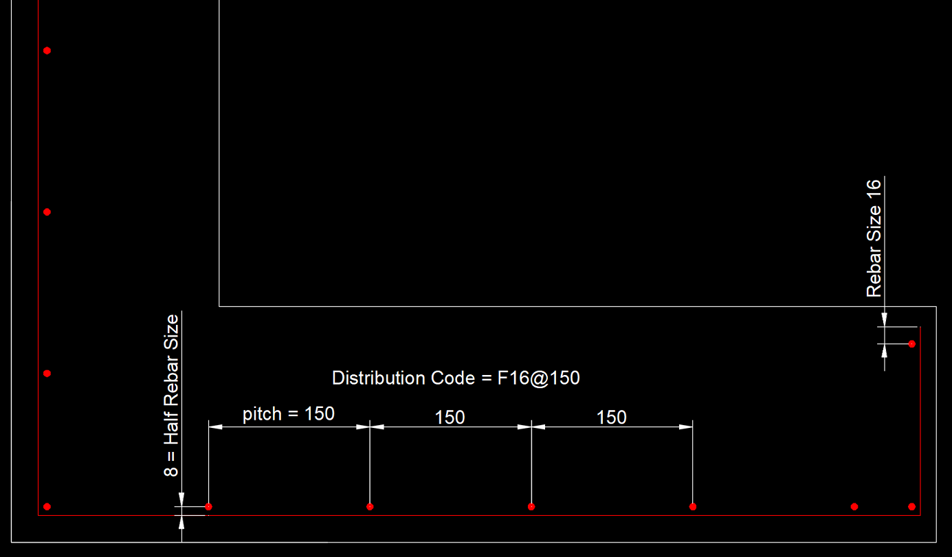 + You can enter pitch "F16@150" or just "@150", and rebar dots will be drawn at 150 pitch, center to center.