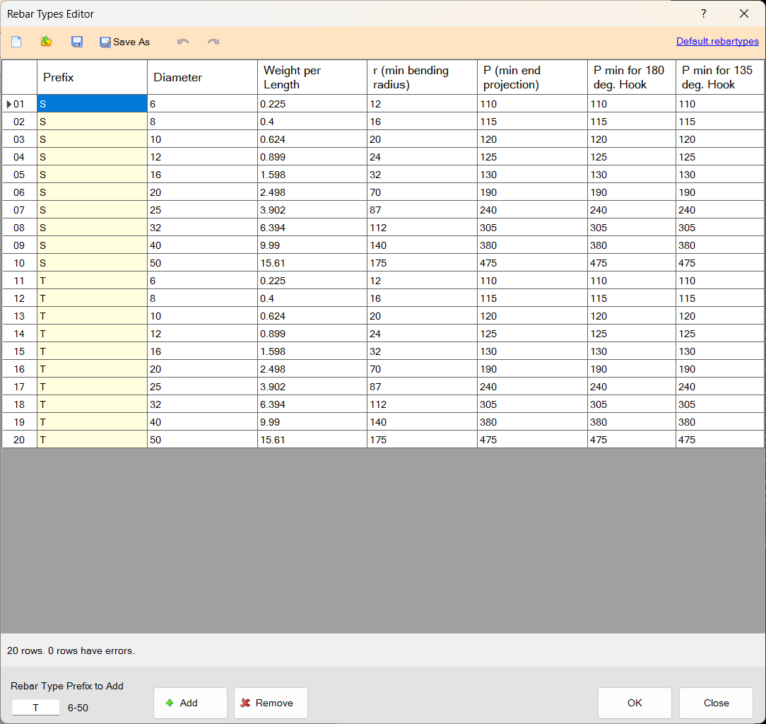 Look at the top menu, you can see the familiar New, Open, Save, SaveAs, and Undo/Redo buttons. Each rebar schedules is a document, saved to an external .rebarschedule files.