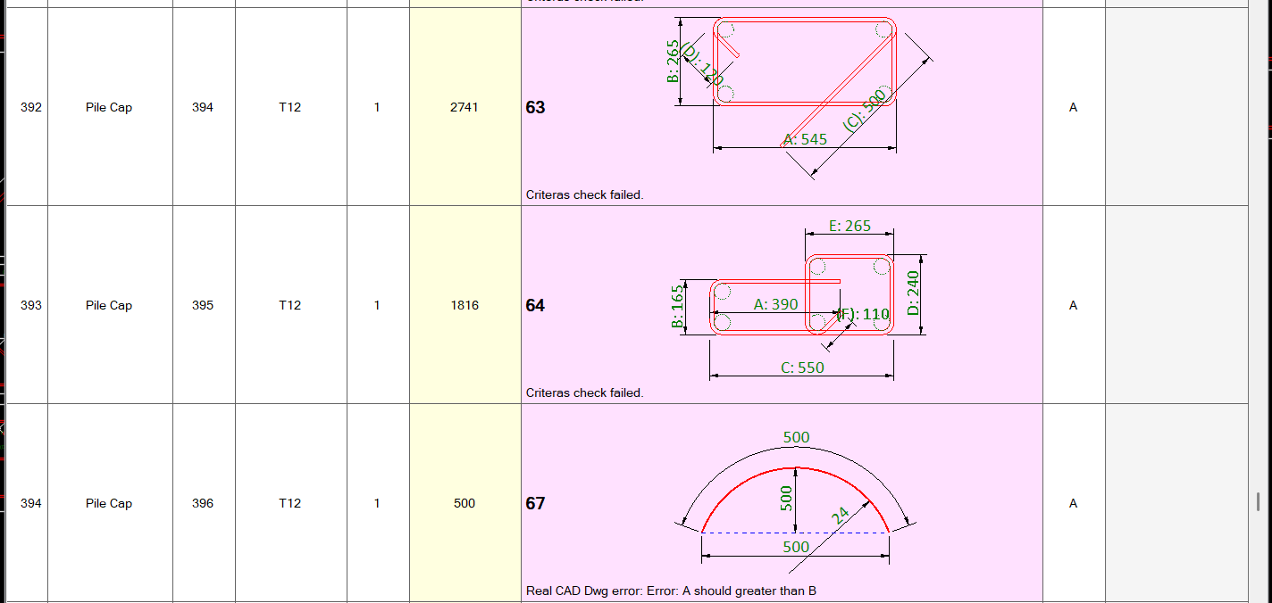 Common errors are: member not found, rebar type not found, shape code not found, Real CAD Dwg generator fails and/or duplicated marks.