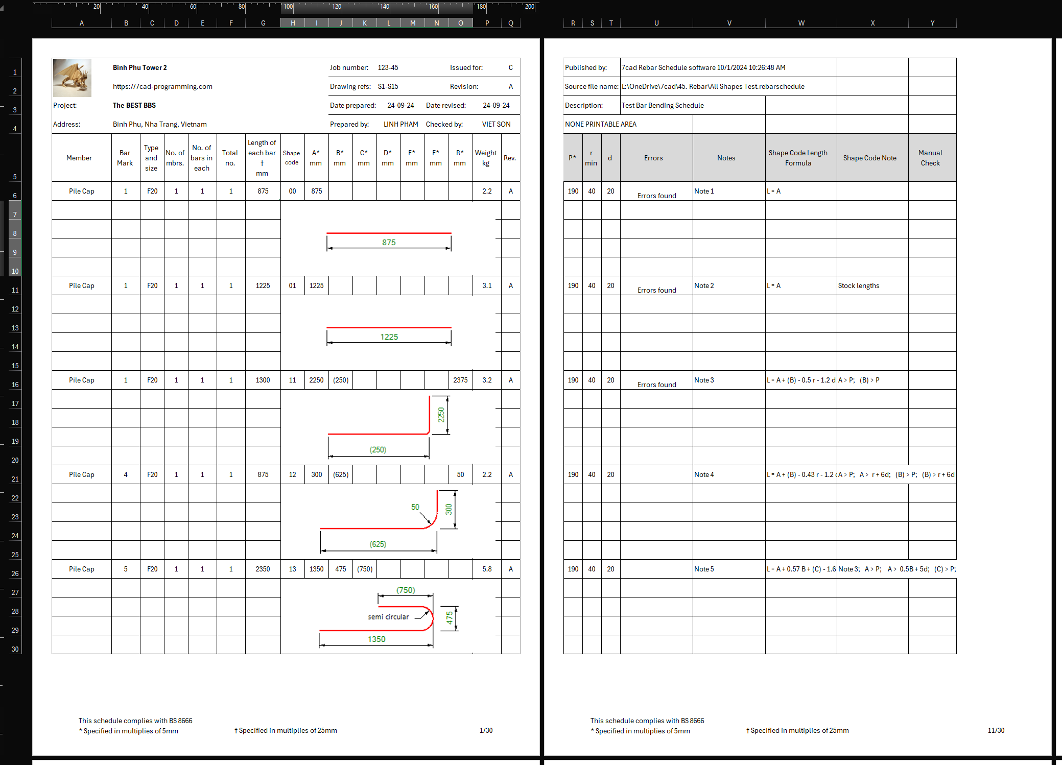 2. More commands on the 7CADREBARSCHEDULE spreadsheet
