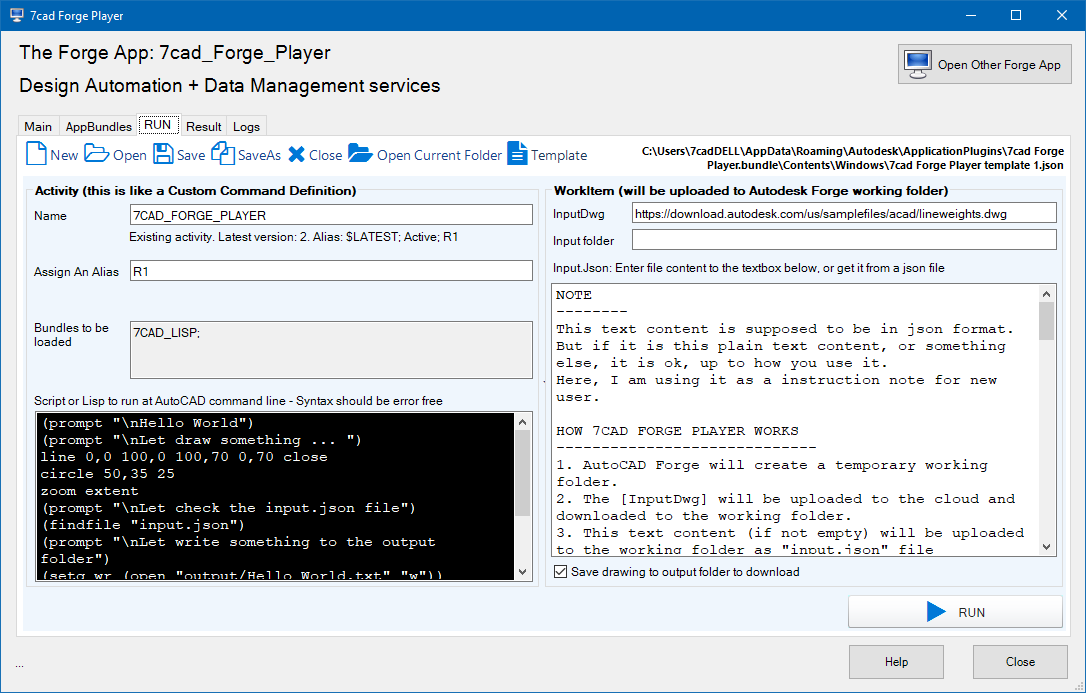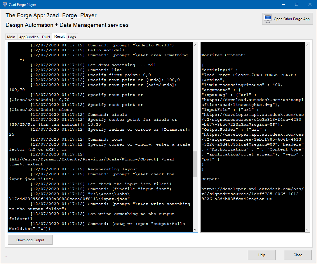 Finally, if you haven't, go and find great instructions about Autodesk Forge here https://forge.autodesk.com/en/docs/design-automation/v3/tutorials/autocad/ You don't have to master it before using 7cad Forge Player. I create 7cad Forge Player for the opposite: play with my app, then, master those tutorials later.